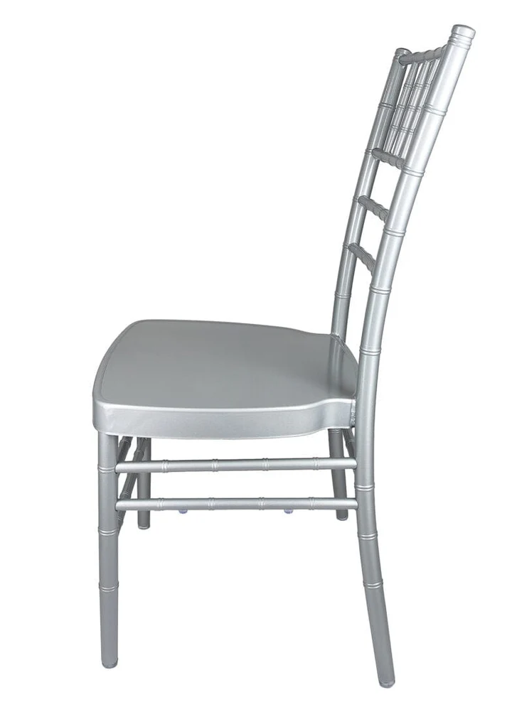 Bring timeless style and unmatched durability to your events with our Silver Aluminum Chiavari Chair. Designed with the elegance of the classic Chiavari silhouette and the strength of rust-proof aluminum, this chair is built to perform season after season. At just 6.3 lbs, it’s lightweight, easy to stack, and effortless to transport—making it the smart choice for venues, rental companies, and banquet halls. Unlike wooden alternatives, it won’t chip, crack, or splinter, ensuring a flawless look for weddings, galas, and celebrations in any climate. Finished in crisp, automotive-grade white paint, it delivers lasting brightness and low-maintenance appeal your clients will love.